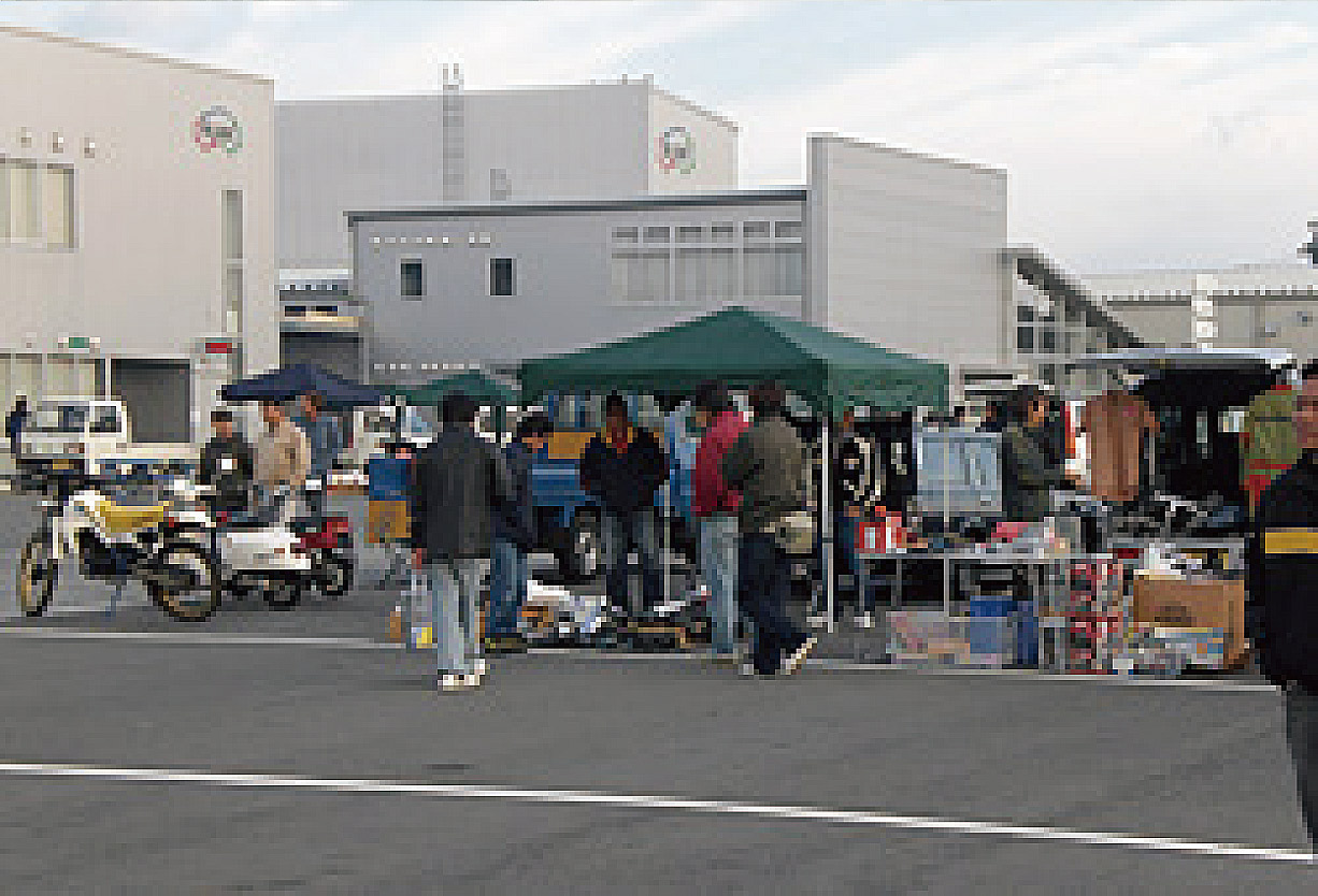 毎年2回、自動車部品を中心とした「フリーマーケット」の会場として無料開放し、収益金の一部を「福祉施設」へ寄付を行っています。